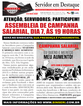 Confira o arquivo de publicações do Sinseri. Você pode ler, imprimir e compartilhar o link do jornal com os seus amigos. Não perca tempo!