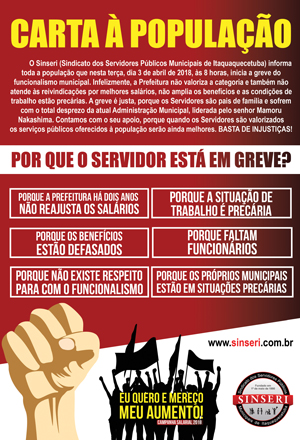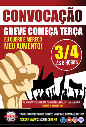 Greve JUSTA começa terça, dia 3, às 8 horas, em frente à Prefeitura