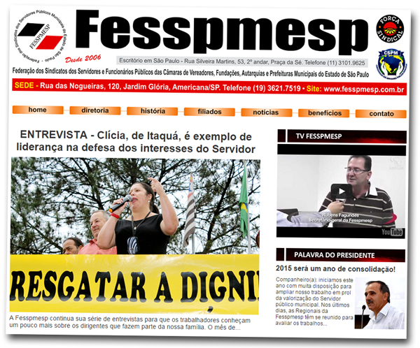 | O site da Fesspmesp (Federação dos Sindicatos dos Servidores Públicos Municipais do Estado de São Paulo) - www.fesspmesp.com.br - um dos mais acessados do setor público paulista, publicou ontem, dia 18 de março, longa entrevista com a presidente do Sinseri, Clícia Mara Damaceno.