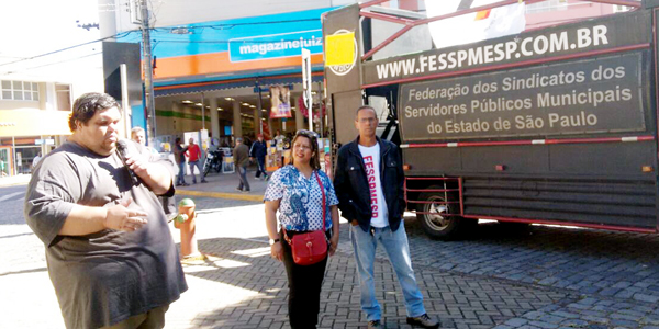 GUARATINGUETÁ - Na primeira greve da entidade iniciada no dia 25 de abril, nossa presidente esteve no município acompanhada de outras lideranças sindicais para oferecer total apoio ao presidente do SISEMUG (Sindicato dos Servidores de Guaratinguetá), José Eduardo Ayres. Lá, falou um pouco da sua experiência à frente do Sinseri e como representante da Fesspmesp ofereceu ajuda.