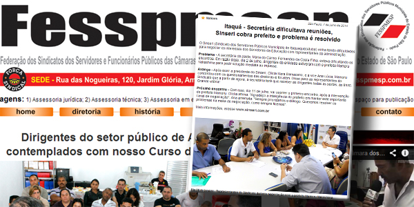 Detalhes - A página da Federação é www.fesspmesp.com.br - São mais de 500 matérias produzidos em pouco menos de dois anos. A entidade divulga suas próprias ações e lutas de Sindicatos filiados. Vale a pena conferir. Fique bem informado sobre as ações em prol do setor público. |