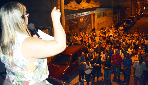 | Presidente Clícia Mara Silva Damaceno lidera assembleia do dia 23 que delibera pela greve da categoria |