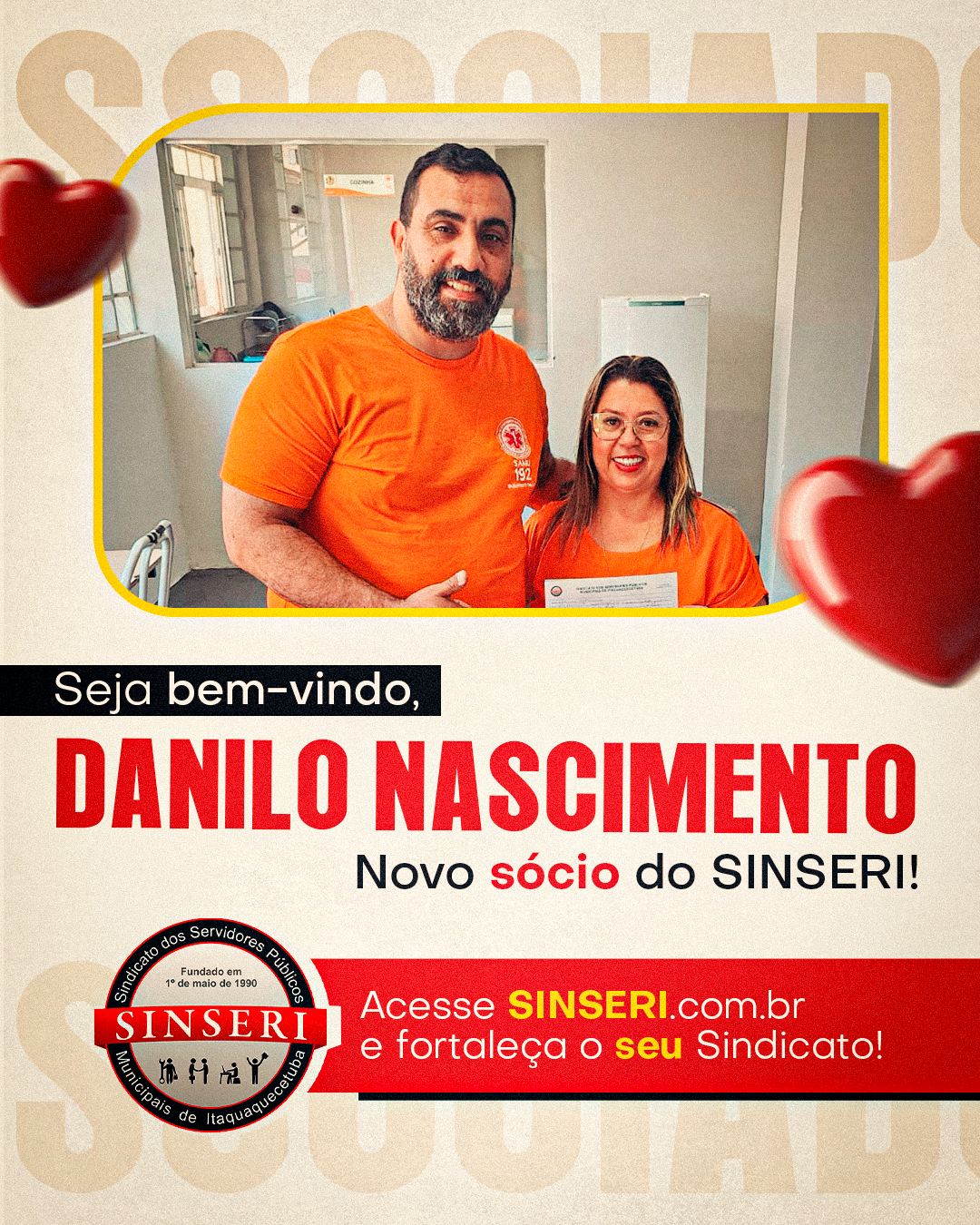 Danilo Nascimento, Motorista do SAMU, agora faz parte do quadro de associados do Sinseri! Seja muito bem-vindo 😄