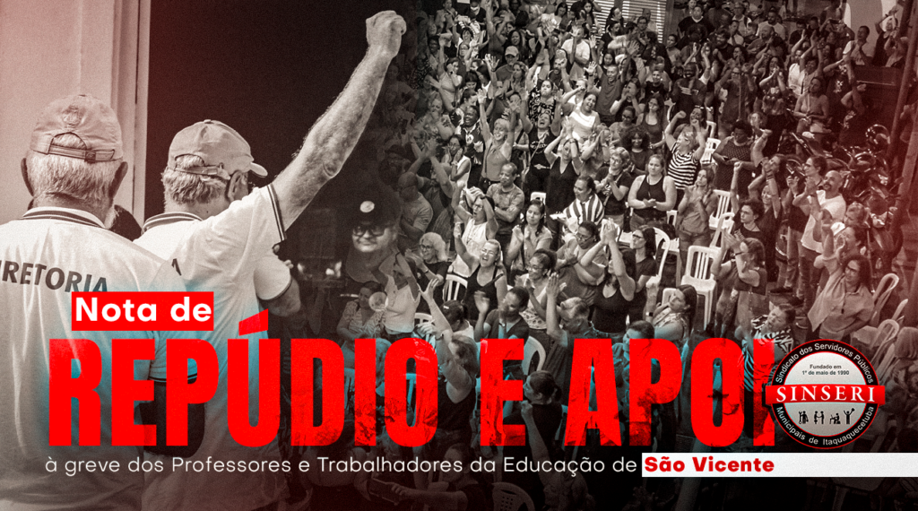 O Sindicato dos Servidores Públicos Municipais de Itaquaquecetuba (Sinseri) manifesta seu mais profundo repúdio à postura autoritária, desrespeitosa e descompromissada do prefeito de São Vicente, que tem tratado com total descaso a legítima greve dos Professores e Trabalhadores da Educação do Município.