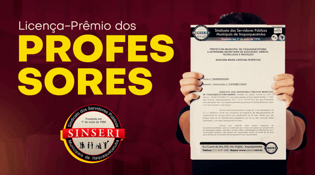O Sinseri aguarda resposta formal sobre o pedido de retroatividade e seguirá acompanhando o tema. A medida vai beneficiar diversos profissionais que, no período aquisitivo, tiveram afastamentos por motivos de saúde ou obrigações legais e, por isso, não obtiveram a licença-prêmio.