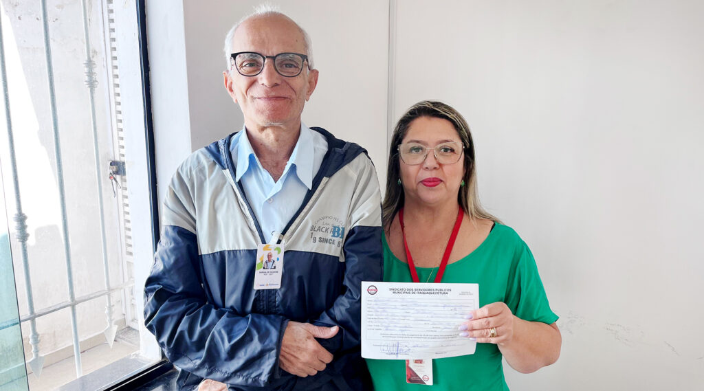 A equipe do Sinseri esteve nesta quinta, dia 18 de setembro, em alguns postos de trabalho da Educação e da Saúde. Na ocasião, tivemos a felicidade de receber dois Servidores em nosso quadro de associados: o senhor Durval de Oliveira, Agente Administrativo da Perícia Médica, e Aline Gabriele Aragão da Silva, Auxiliar de Sala Especial na EMEB Paulo Nunes. É sempre uma grande alegria conversar pessoalmente e esclarecer a importância da filiação dos companheiros.