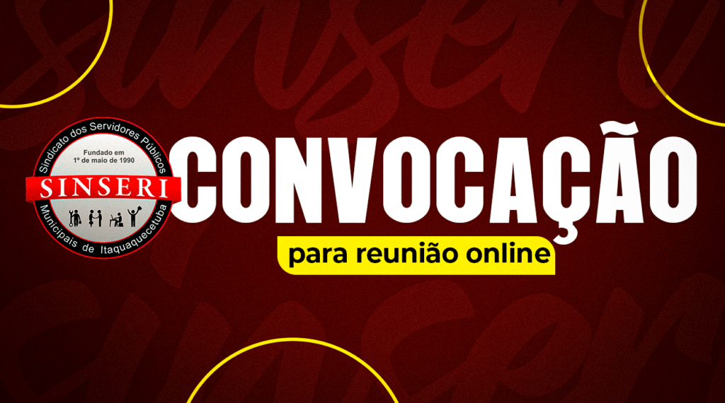 O Sinseri convoca todos os Servidores para importante reunião online, dia 15 abril, às 19 horas, pela plataforma ZOOM. O encontro tem o objetivo de trazer esclarecimentos essenciais sobre temas fundamentais para a categoria.