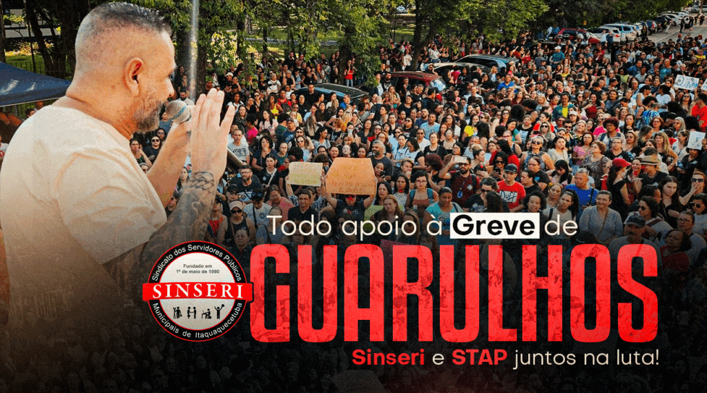 O SINSERI (Sindicato dos Servidores Públicos Municipais de Itaquaquecetuba) manifesta seu total apoio ao STAP (Sindicato dos Trabalhadores da Administração Pública Municipal de Guarulhos) e repudia a postura autoritária da Prefeitura de Guarulhos, que aprovou, com o aval da Câmara, um reajuste de apenas 2% para os Servidores públicos.